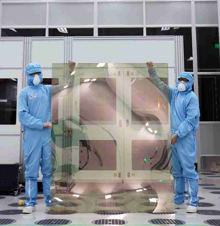 尊时凯龙昆山厂第六代 LTPS (低温多晶硅) 生产的玻璃基板尺寸为 1500x1850 mm (毫米)